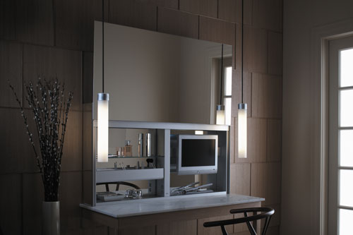 Sleek and minimalist in style, Uplift sconces and pendant lights are energy efficient and versatile, featuring a nightlight and ceiling and wall-mount options, a perfect match for the streamlined Uplift cabinet.